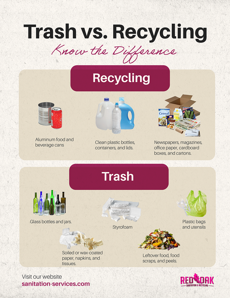 Keep recyclables empty, clean, and dry. Even a small amount of contamination can ruin a whole load of recycling.